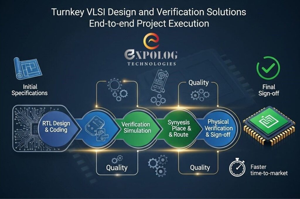 EXPLORE YOUR EXPECTATIONS Our Capabilities Expolog Technologies delivers cutting-edge semiconductor solutions in ASIC Design Verification, Digital Mixed-Signal Verification, and FPGA- based IP Cores. VLSI Design services with emphasis on quality deliverables & schedule. Semiconductor design services viz. ASIC/SoC Design, Verification, FPGA Design & Validation Services. Design verification services ASIC Verification SOC Verification IP Verification Digital mixed signal Verification CPU Verification GLS Verification Turnkey projects with full ownershipStructured planning & robust risk management Services Company Contact VLSI Design Services Corporate Training About Us Contact Us Expolre More connect@expologtechno.comexpologtech@gmail.com Phone : +91-9632277946 +91-9019995235 EXPLORE MORE